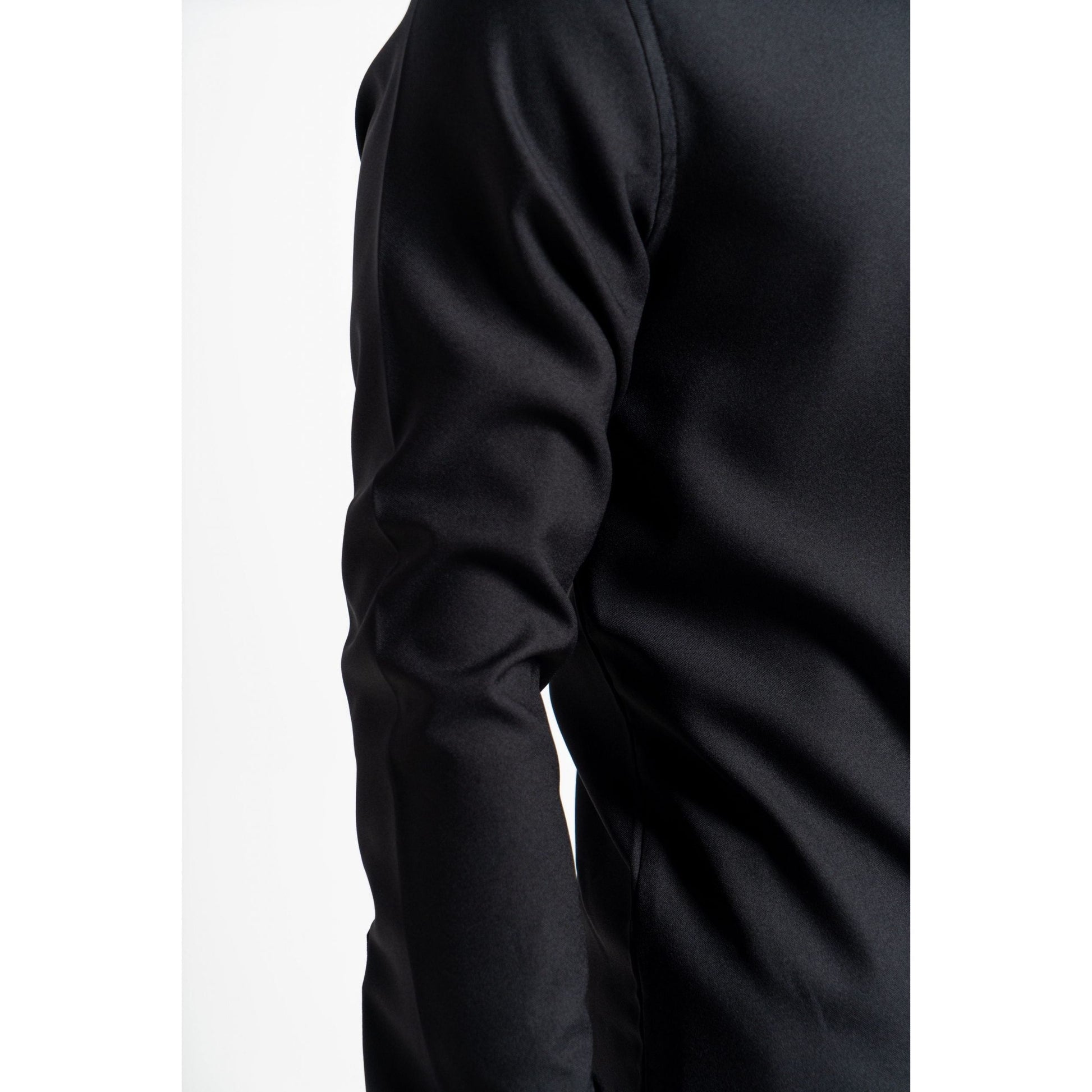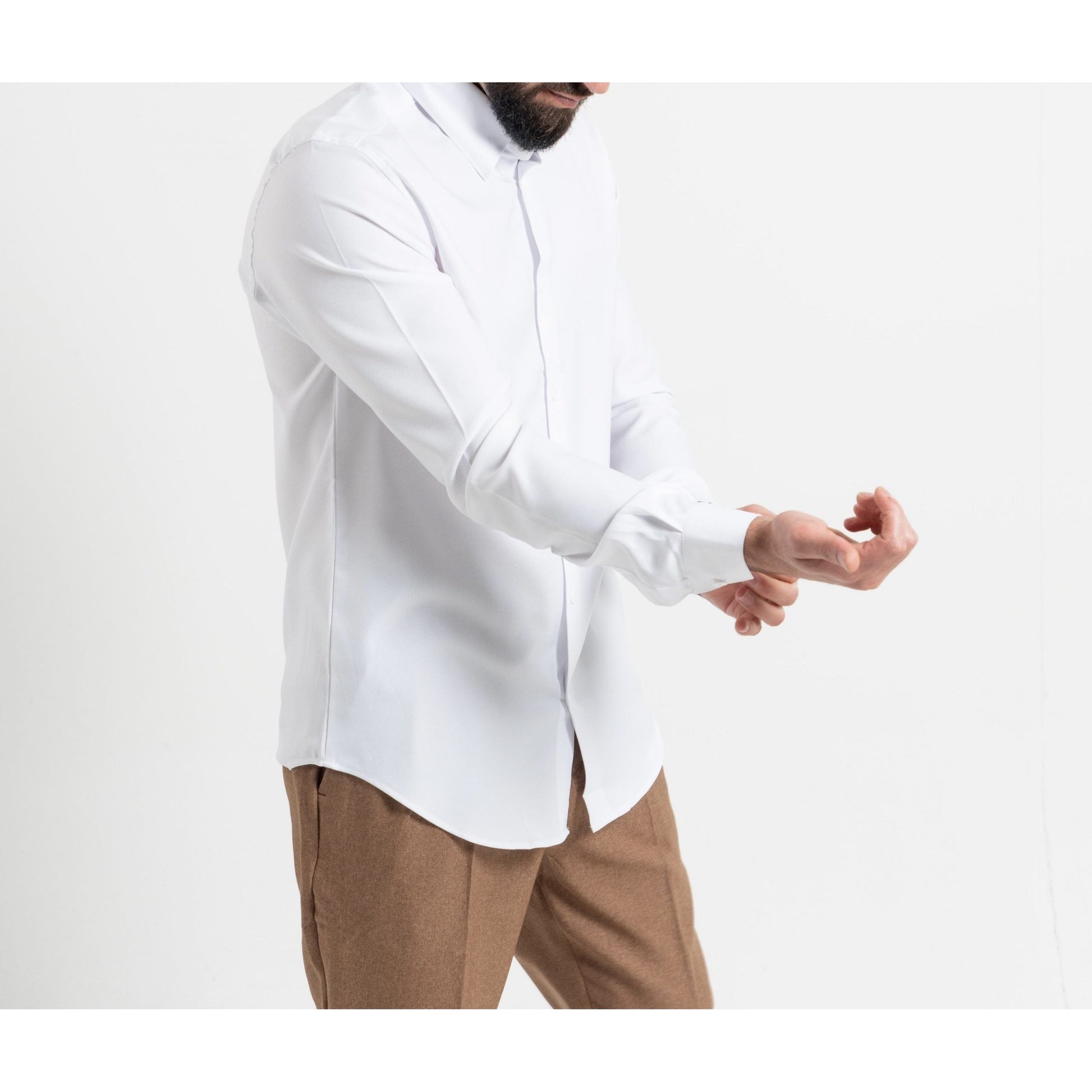The fact that the shirt is made of 100% polyester means it's a synthetic fabric. Polyester is a common material used in dress shirts, known for its durability, wrinkle-resistance, and ease of care.