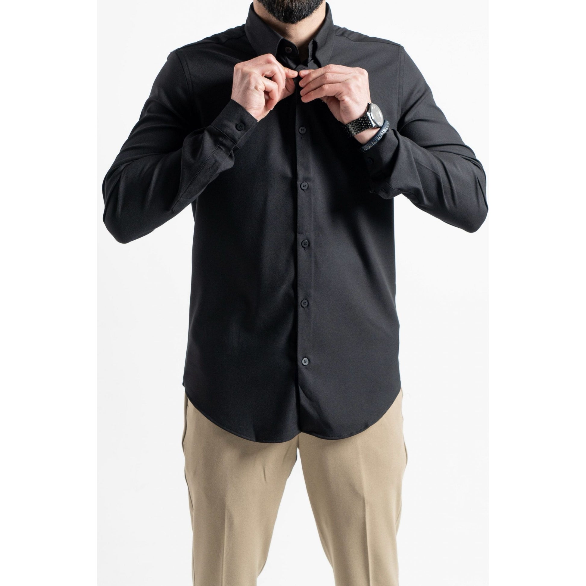 The very stretchy quality of the shirt suggests that it has some degree of elastane or spandex added to the fabric, which allows it to stretch and move with you. This can make the shirt more comfortable to wear, especially for activities like dancing, golfing, or other sports